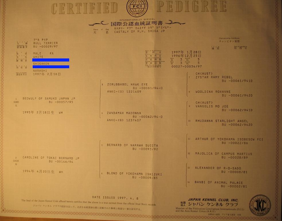 血統書 Certified Pedigree
