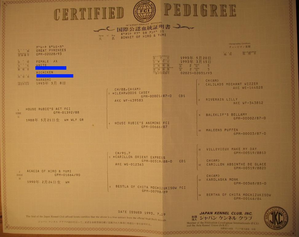 血統書 Certified Pedigree
